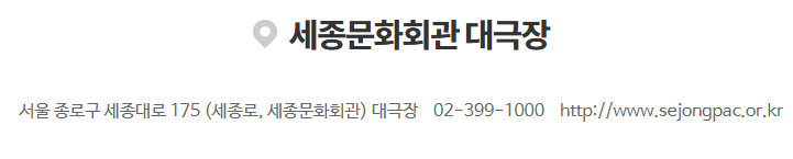 | 세종문화회관 대표전화 | 02-399-1000 |