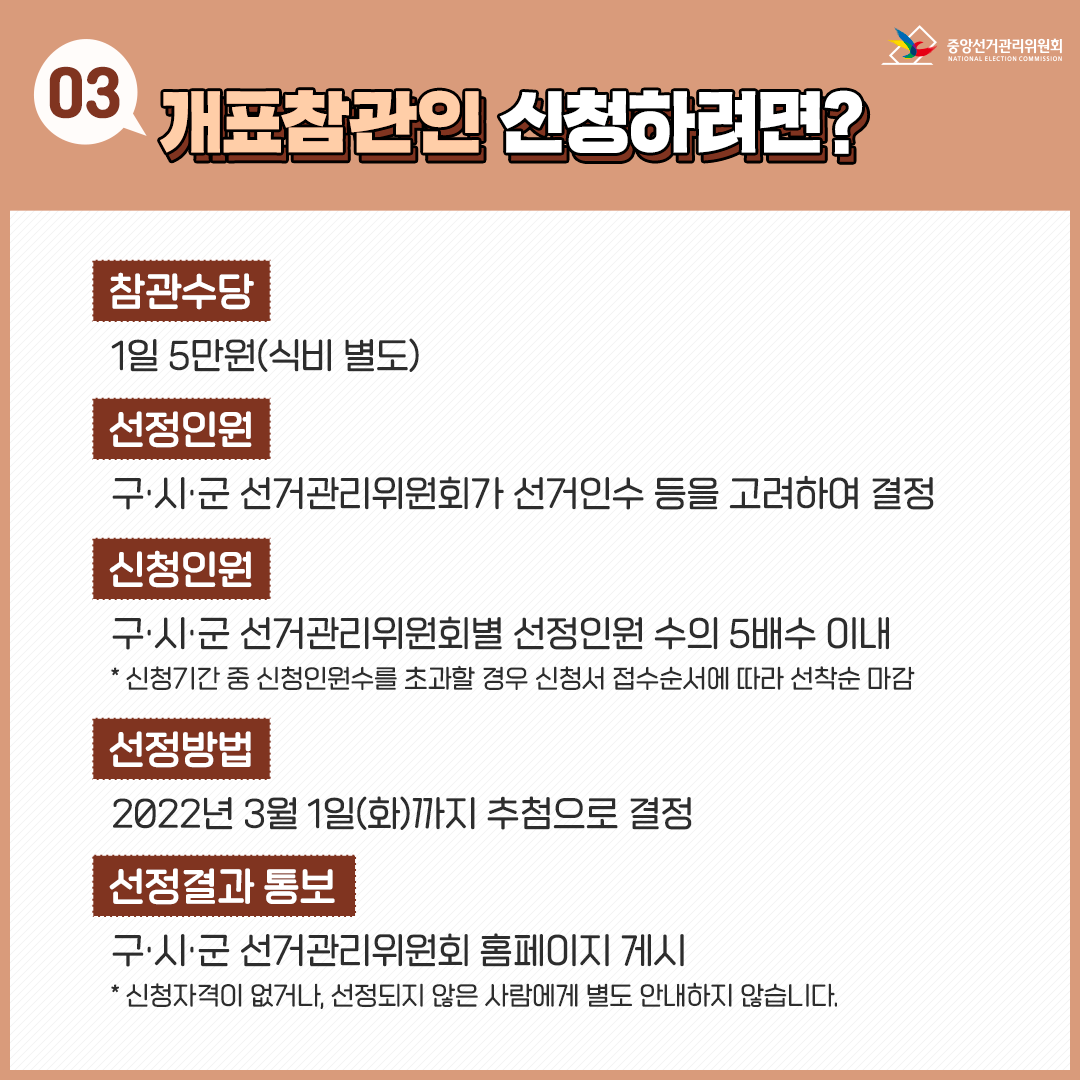 신청방법 선관위 홈페이지 또는 지역 선관위 공고 확인 후 접수