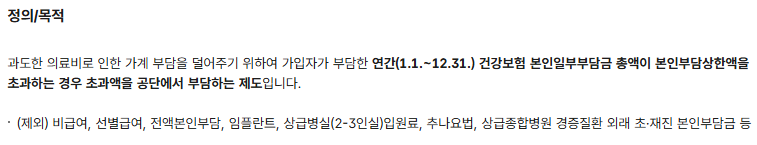 - 본인부담상한액 초과 진료비가 발생한 건강보험 가입자 및 피부양자