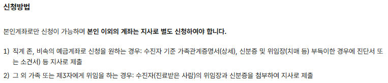 - 지급방식: 본인 명의 계좌로 입금 (가족 명의 불가)
