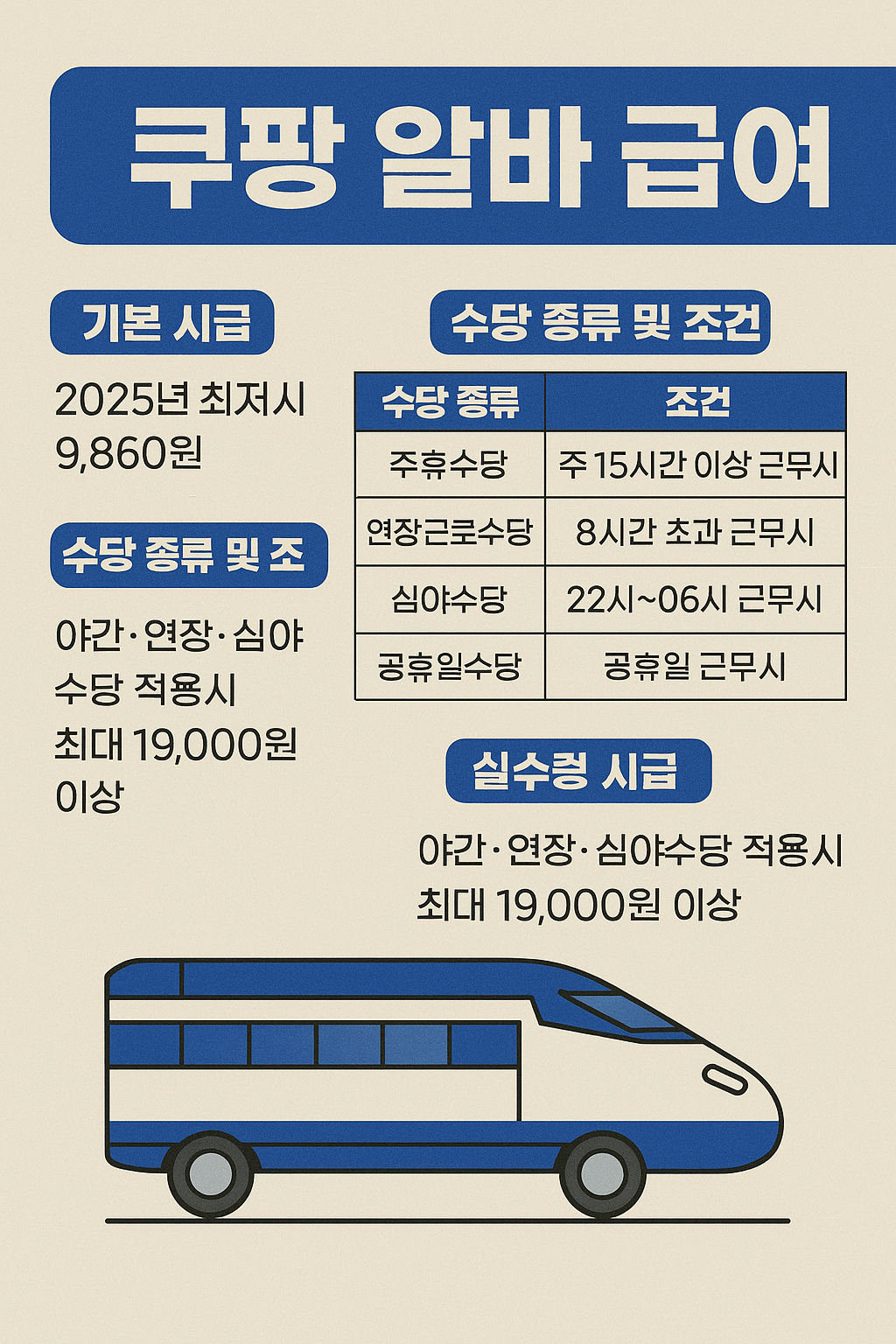 2025년 최저임금은 시간당 10,030원이다. 쿠팡 알바는 이를 기준으로 하며, 야간·주말·특근·심야 등 조건에 따라 다양한 수당이 추가된다.