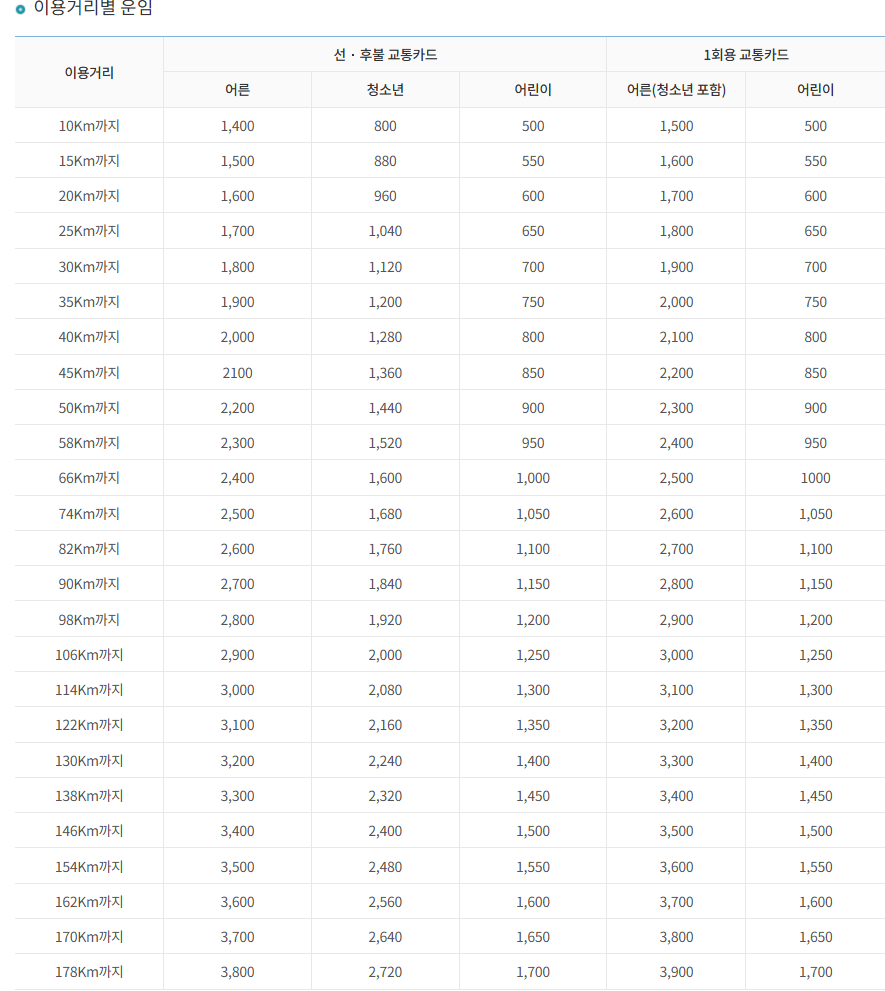 - 주의사항: 교통카드 등록 필수, 선불카드만 가능