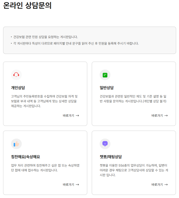 - 건강보험: 국민건강보험공단 홈페이지 또는 관할 지사 방문