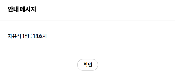 - 자유서 이용 시 해당 호차에 승차해야 하며, 자유석 승차권은 전화반환, 분실재판매, 전달하기가 불가
