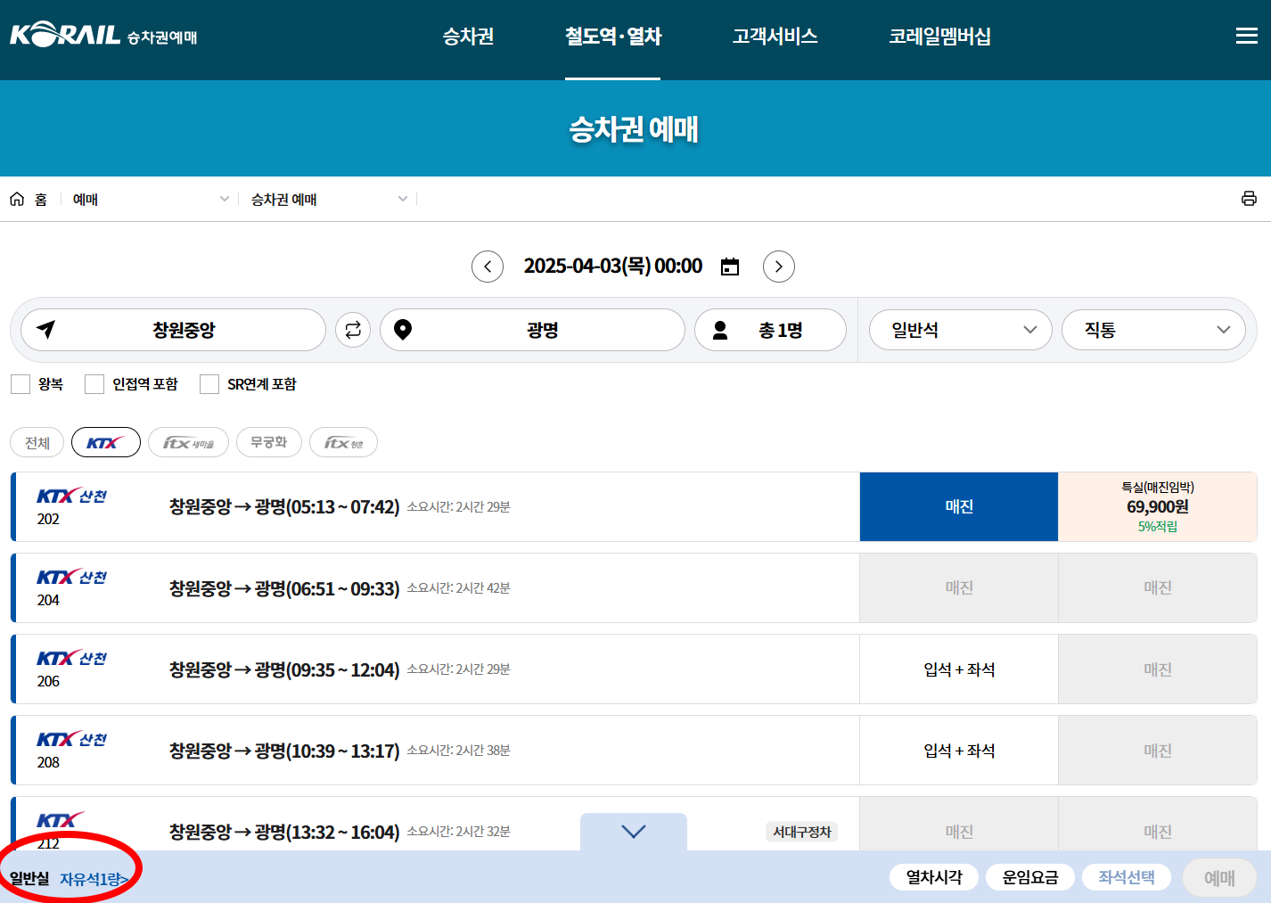 - 서울역 같은 인기가 많거나, 사람이 많은 역에는 20분 전에 탑승해야 자유석에 앉을 수 있