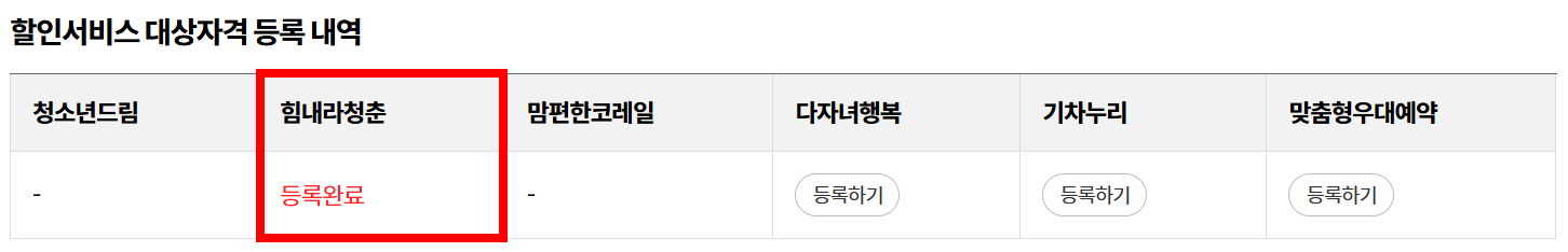 A4. 코레일 로그인 > 마이페이지 > 회원정보 수정에서 힘내라 청춘 항목 체크하면 완료됩니다.