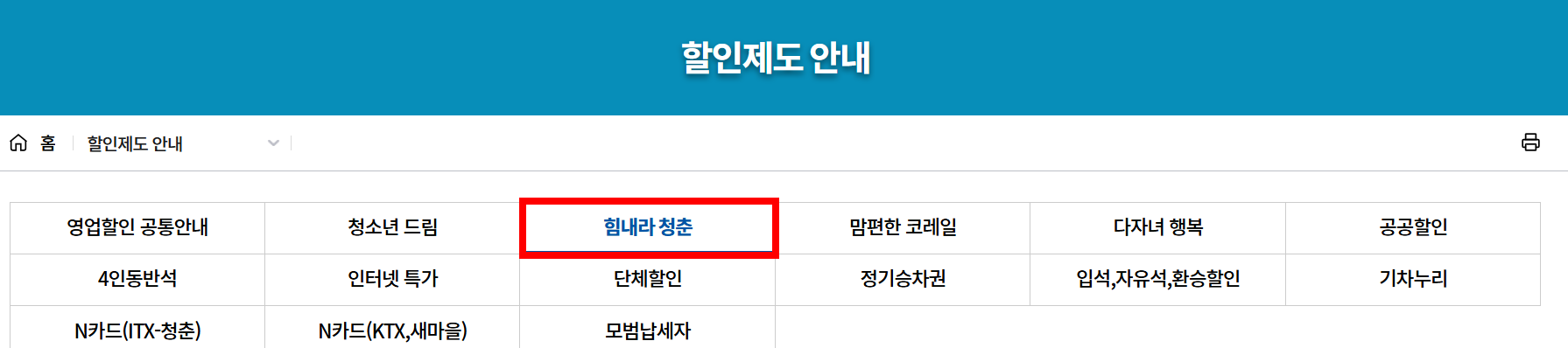 KTX 가능 최대 40% 힘내라 청춘 적용 가능