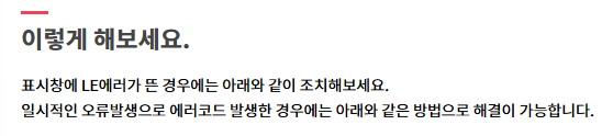 LG 드럼세탁기를 사용하다 보면 간혹 LE 에러코드가 뜨면서 세탁기가 작동을 멈추는 경우가 있습니다.