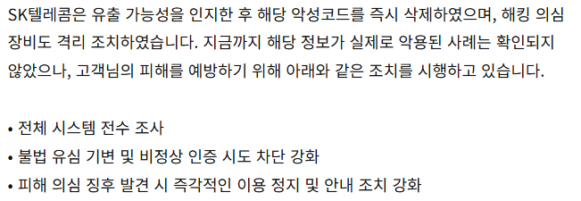 ※ SKT 뉴스룸 및 고객센터를 통해 피해 여부 확인 후 교체 가능