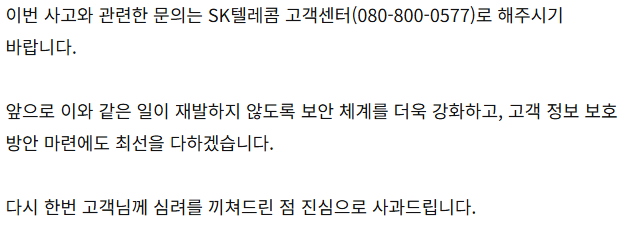 - 피해 내용: 가입자 일부의 개인 정보 유출 및 부정 사용